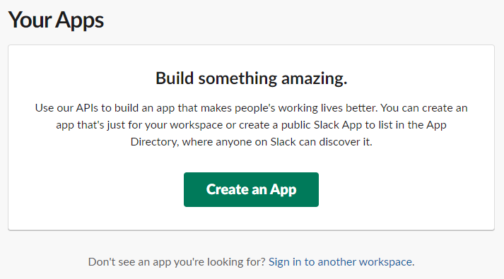 이제는 Slack API를 사용하여 봇을 만들고, 워크스페이스에 추가해 봅시다.
