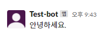 그럼 "안녕하세요."를 Slack API 봇을 통해 보내볼까요?