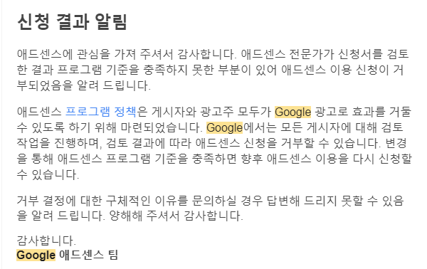 1. 구글 애드센스 신청 거부