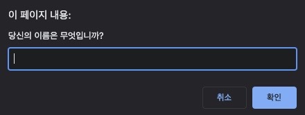 prompt 메서드는 사용자가 텍스트를 입력할 수 있는 선택적 메시지를 갖고 있는 대화 상자를 띄웁니다.